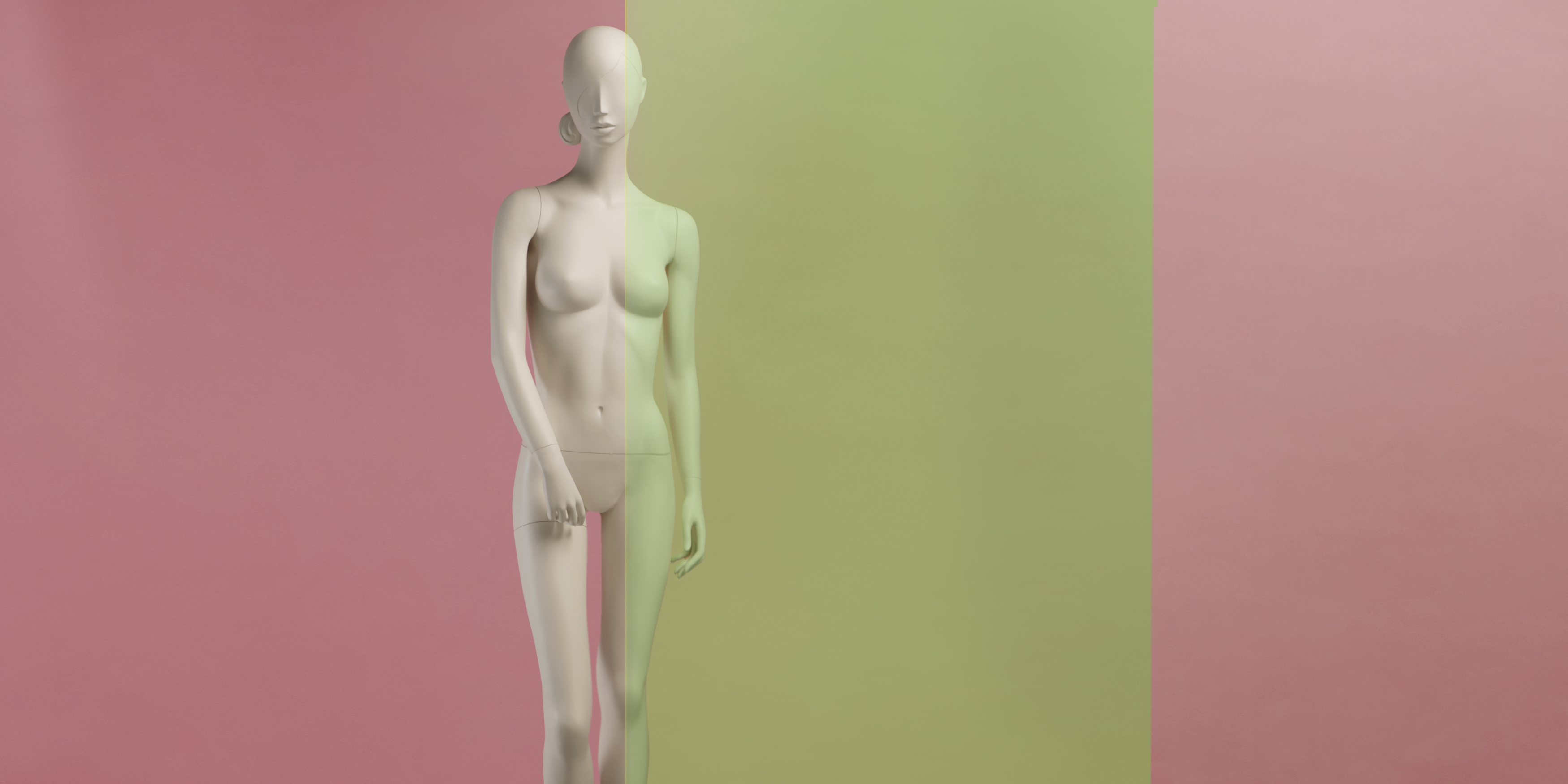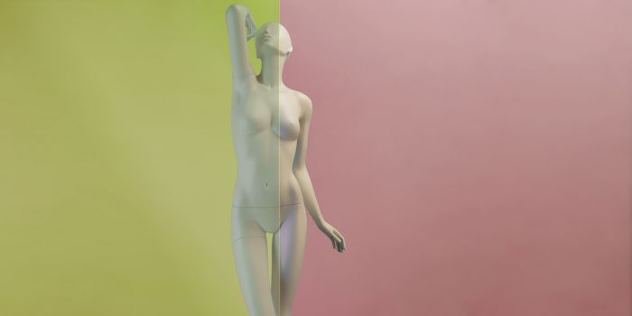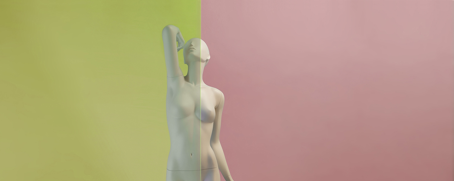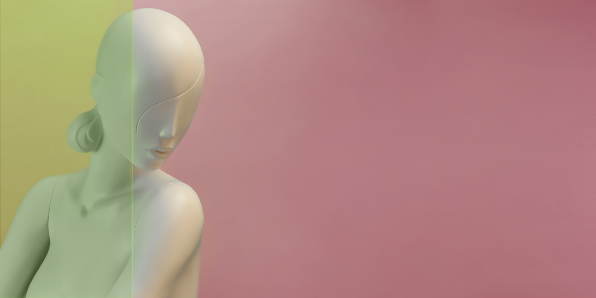 The face is abstract with distinguishing features which reveal a sculpted hairstyle. Precise and instantly recognizable.