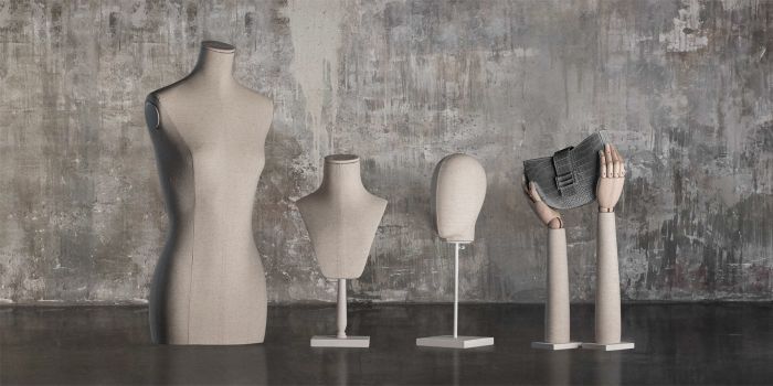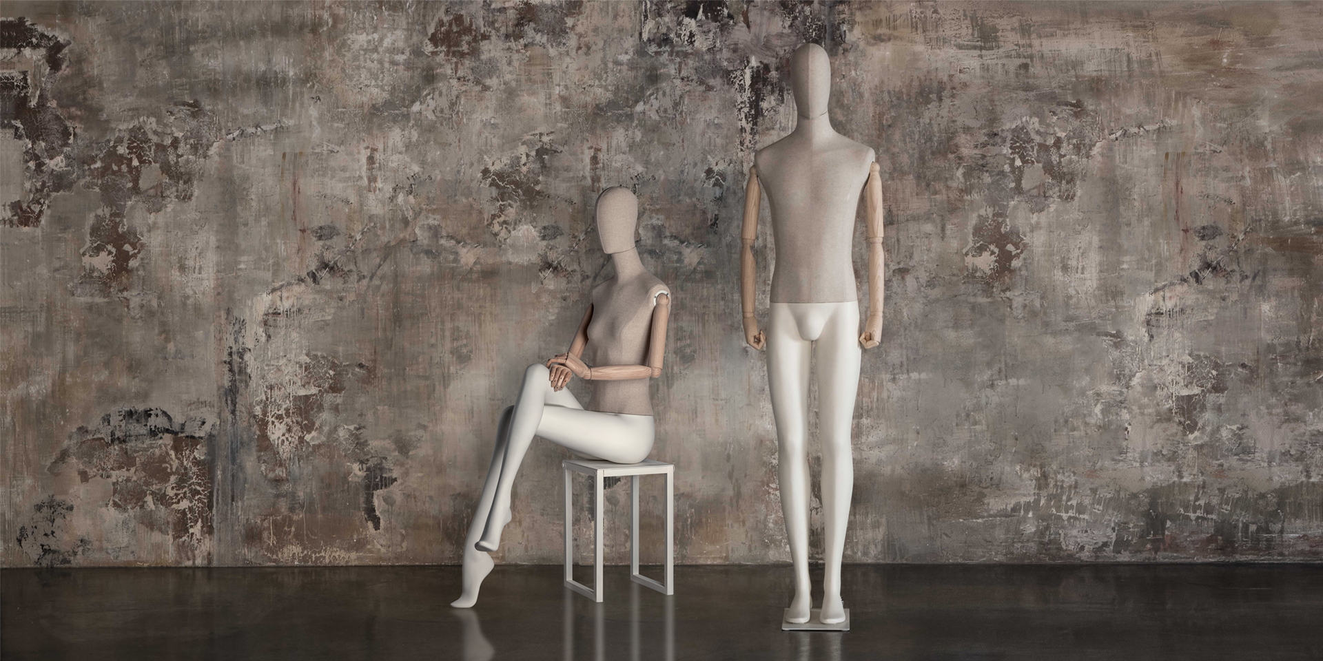 Flawless and harmonious bodies complemented by pure linen fabric and articulated arms in sustainable veined wood.