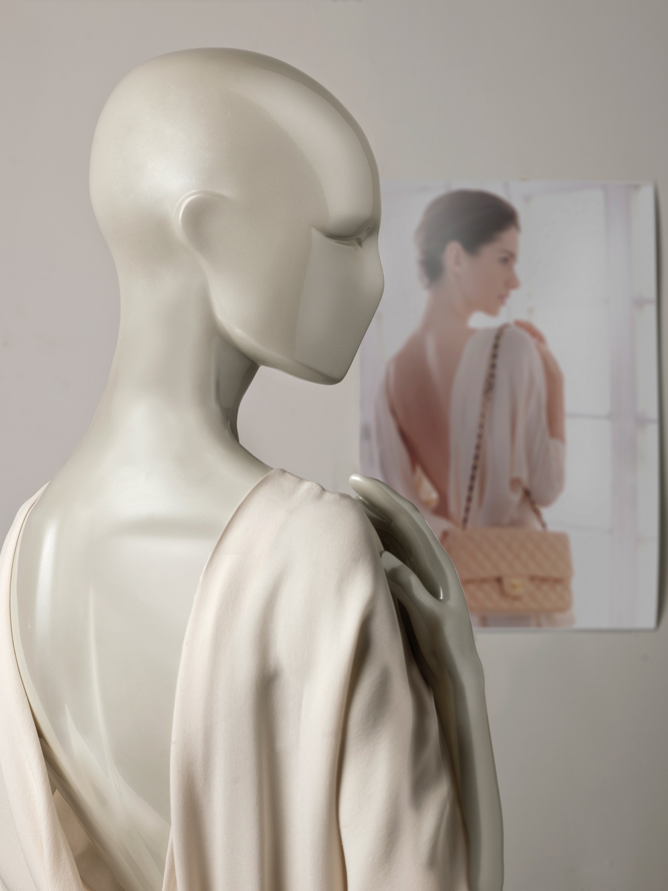 Another problem that was immediately placed was the "where". I already had a like and a thing but lacked the location in which to set my work. The tests I had made were very very minimal, wall floor and nothing else but maybe it wasn't the right way. Recovering the work of Tim Wlker and Annie Leibovitz I thought it might make sense to create a scenario that was in turn a dream scenario in order to strengthen the gesture that the mannequin was doing. The photo that I had chosen to set was one of the few that the Momentoavevo and that worked, that is, that of the dummy that takes off the arm. The problem now was in figuring out what kind of location could have rafforzarequesto message. The gesture that the dummy performs is precisely the taking off an arm, without looking, naturally as if it were a normal thing for her to change the pieces. This made me think of the gesture, much more human, of the undressing and then immediately I thought of a very homely location. Yet it was not enough, it took a longer step, a house was not that fairytale world I was looking for that I started to search in the shops of Bolzano if someone had spaces that were good for my work. Only after doing the photo I realized that it was something that did not work at all; It was aesthetically beautiful and attractive but the attention shifted from the gesture of the mannequin to the context in which it was immersed in more this imaginary so pushed was so theatrical that he called the fiction of the theatre and lost the ambiguity of the human dummy by recalling the world of fashion photography in which nothing of what we see is true. I in this case did not want to lose the Attaccamentocon a minimum of reality (reason why I excluded as background the photographic limbo). At this point the choice of where he returned almost to my first tests: I light floor, a white wall and nothing else. Nothing was to distract from the dummy and his gesture, neither the place nor the clothes. Everything be neutral and clean while remaining a true place and not a white limbo. We publish a part of the thesis realized by Luca Meneghel, now a graduate of the Faculty of Design and Arts of Bolzano, who has carried out a research on the concept of beauty of our days.