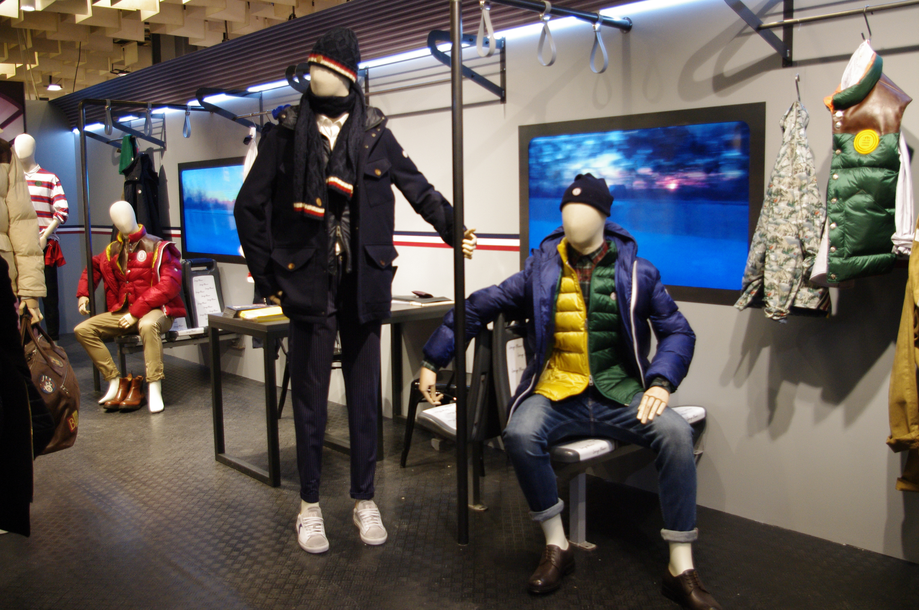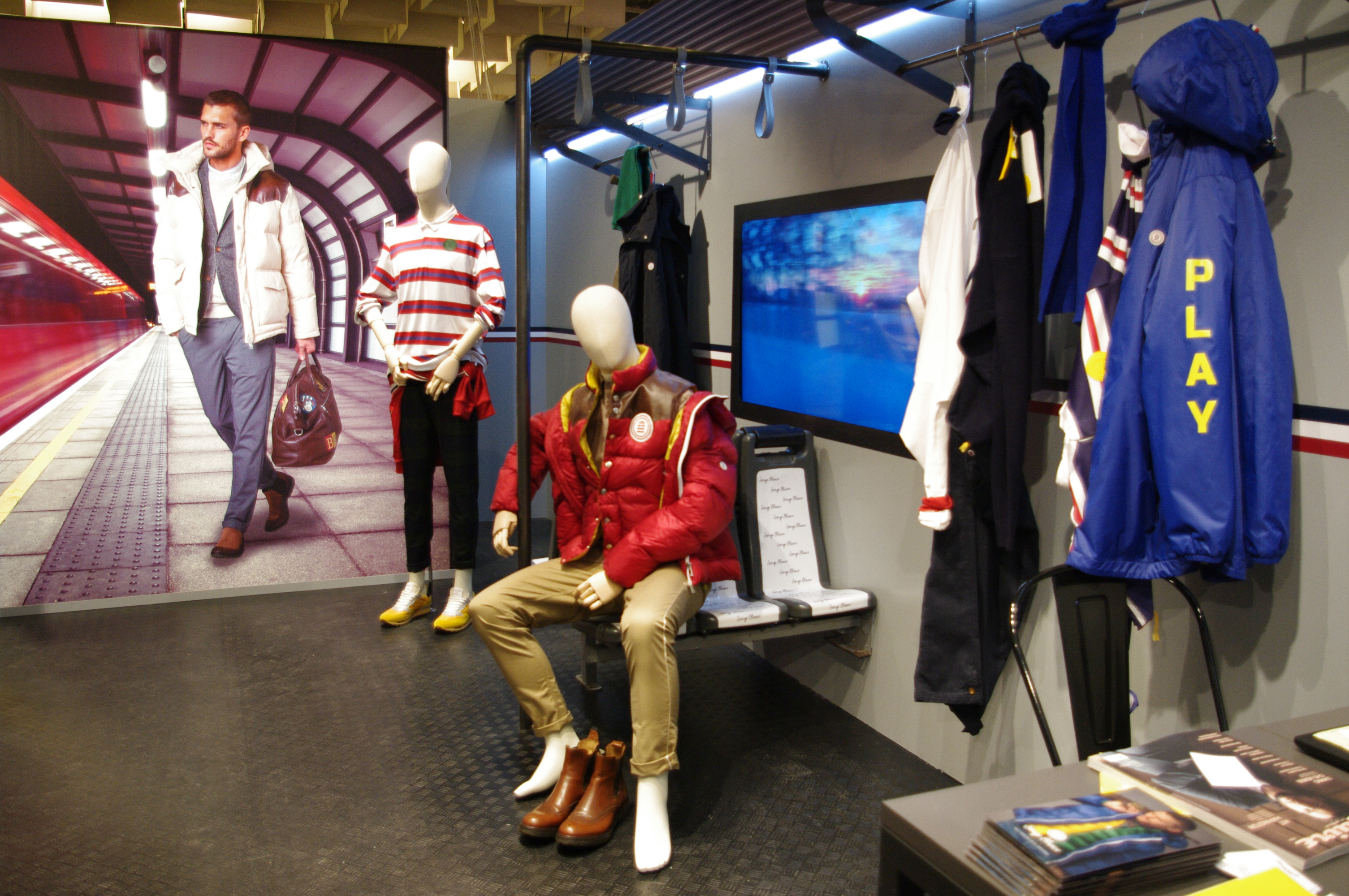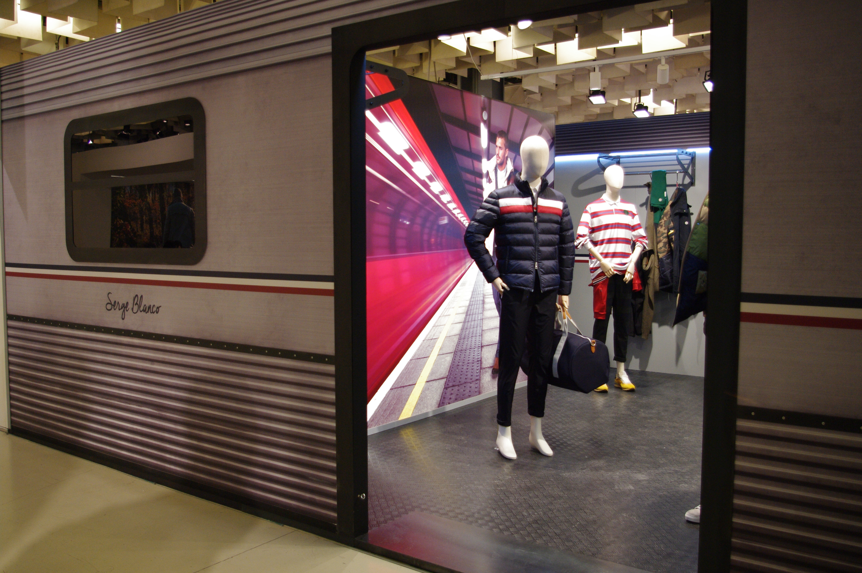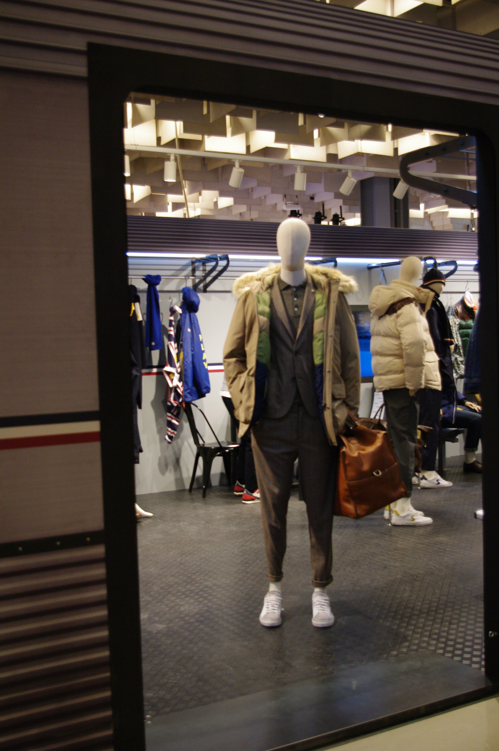 French fashion brand recognized worldwide for its high quality materials (Japanese and Italian fabrics, cashmere, merino) and craftsmanship. Serge Blanco also shows its distinctive style at Pitti with a stand that elaborately simulates a subway train, inside and out, complete with windows showing a world in full movement as one would see riding on the mètro.