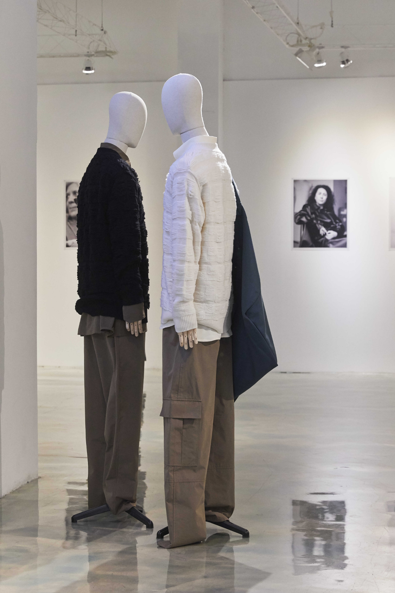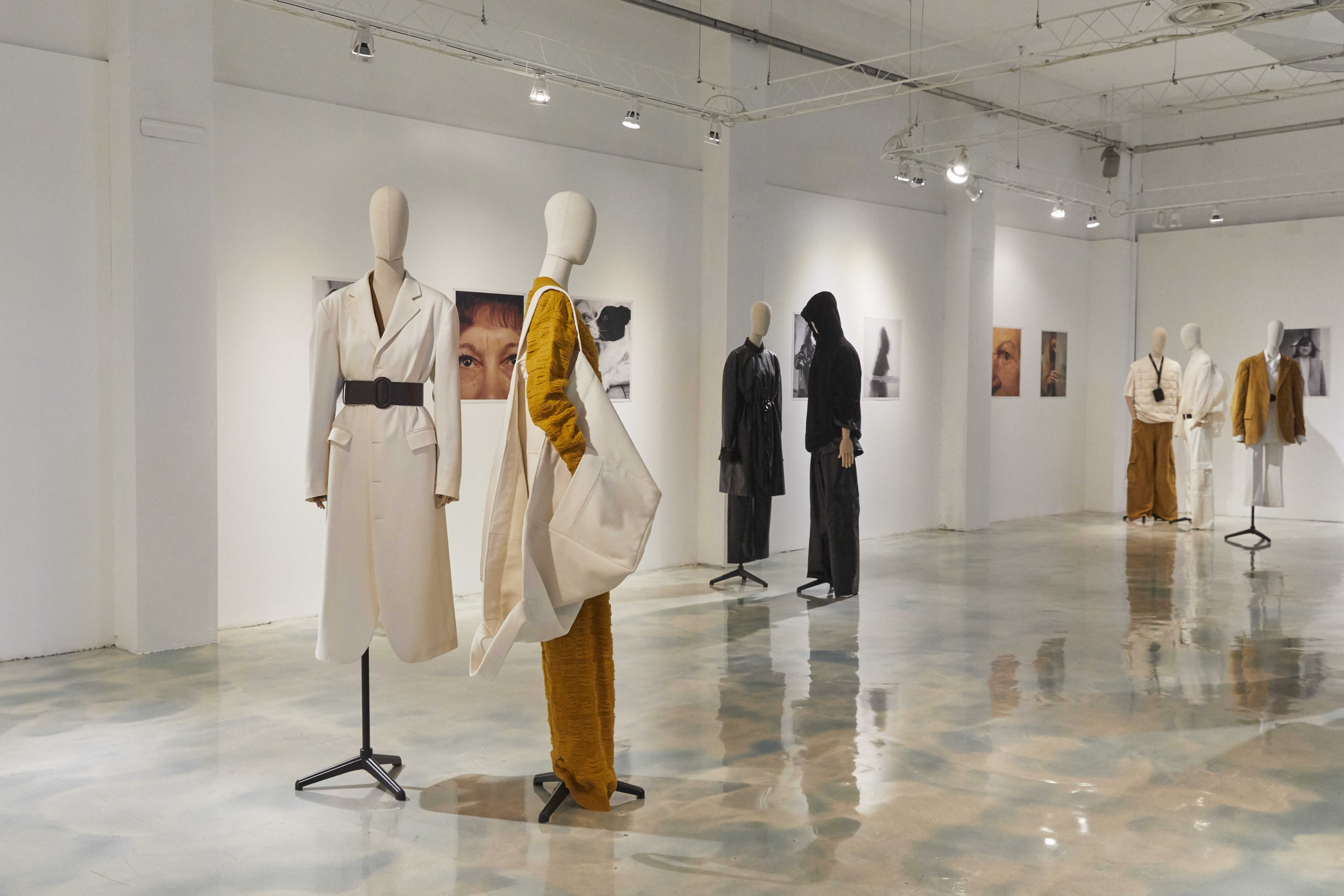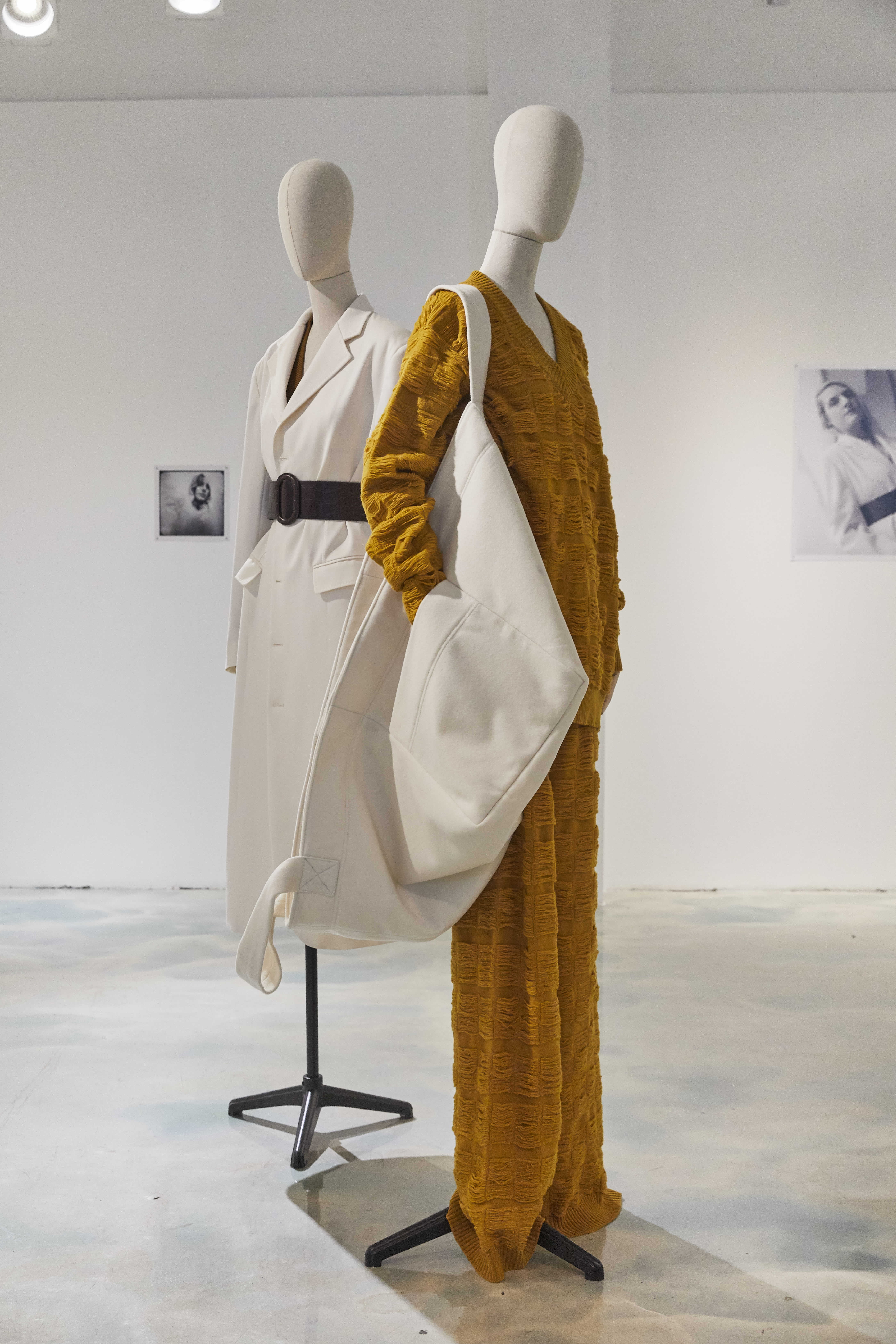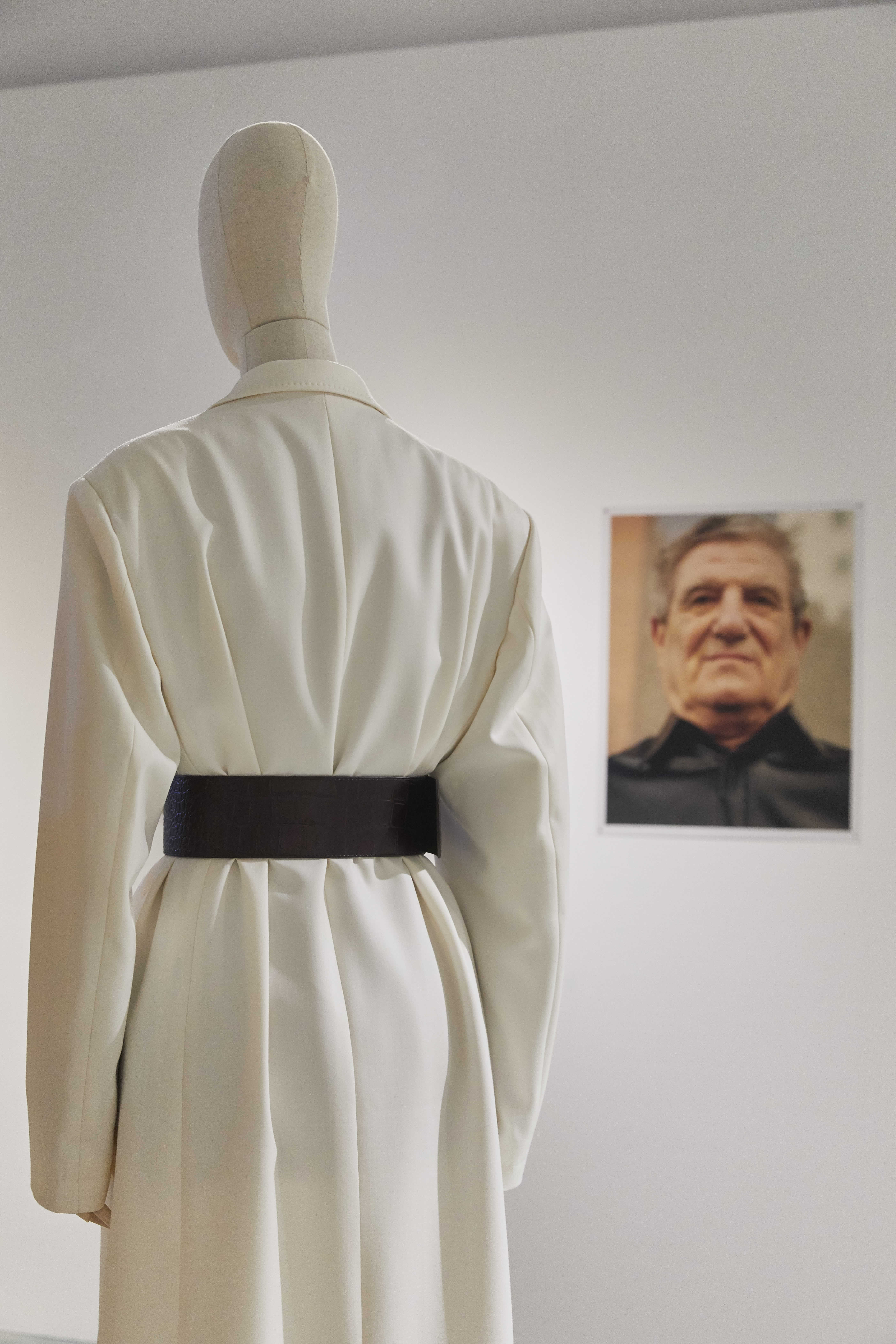 Jackets grow down to become dresses, waistlines rise very high in cargo pants highlighted with maxi-belts, the oversized button-less jackets are light and unadorned, the tailored garments in wool and cashmere are extravagant in their volumes.